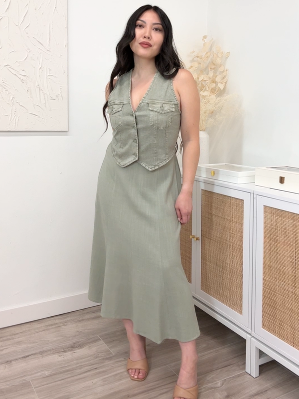 Color in green. Polo neck. Breast pocket. Button down dress. Short sleeve. Cute pearls all throughout. 95% polyester, 5% spandex. Mina is wearing a small. Measurements (inches): bust S: 40M:...