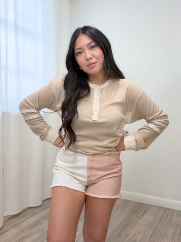 Available in colors blue and khaki. Long sleeve: Collar Functional buttons. Front breast pocket. Oversized fit. Loose and flowy. Romper: Strapless top. Smock top. Flowy shorts. Layered short design. 100%...
