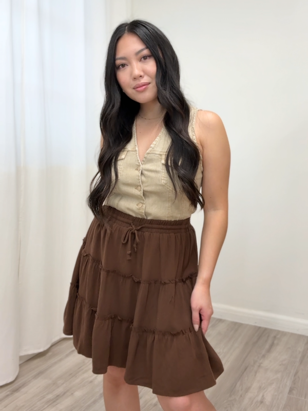 Khaki color. Top: Straight neckline. Smocked back. Stretchy back. Cropped. Bottom: Tie front. Non-stretchy. Zip closure in back. 95% polyester, 5% acetic acid. Mina is 5ft and wears a size...