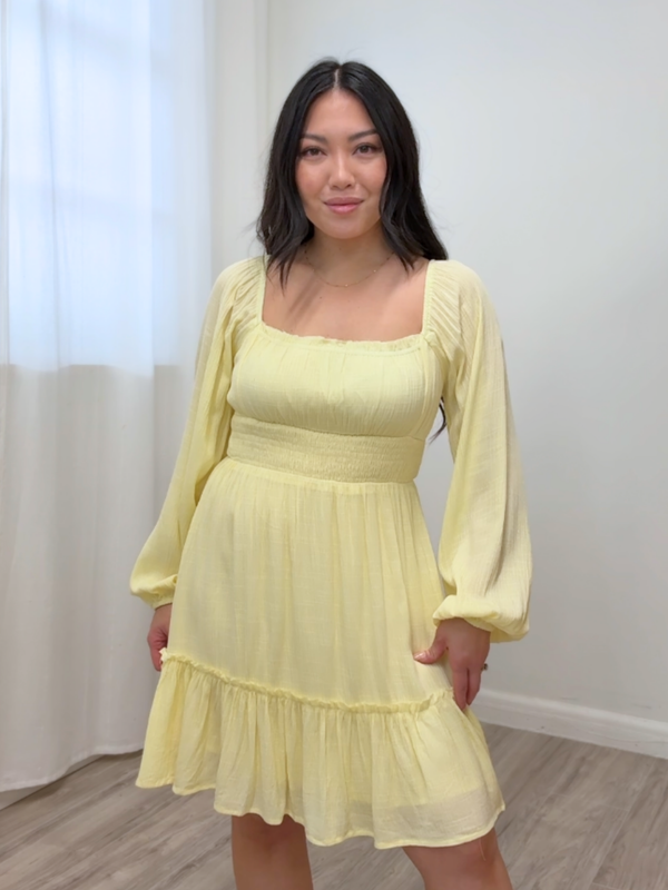 Sky blue color. Square neckline. Smocked bust. Dotted mesh sleeves. Polyester lining with mesh skirt. Raw edge and dotted details along mesh skirt. 100% Polyester. Mina is 5ft and wears...
