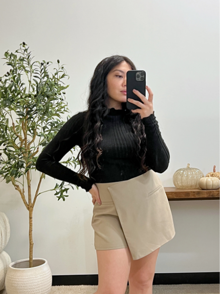 - Mina is 5ft tall and is wearing a small.